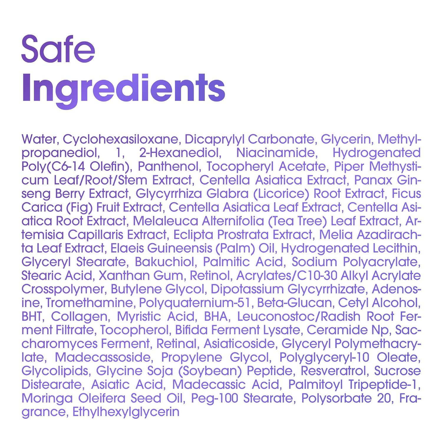 - RETINOL SERUM : The Retinol Serum offers a safe and powerful skin improvement effect with its Re-active technology that is gentle on sensitive skin that has been sensitized by frequent damage. This facial serum contains Retinol 0.1%, Retinal 1ppm, and Bakuchiol 5,000ppm, which promote the synthesis of collagen and elastin in the skin. This daily serum also includes Panthenol, Beta-glucan, Ceramides, and Trucica to help with damaged skin recovery and strengthen the skin barrier