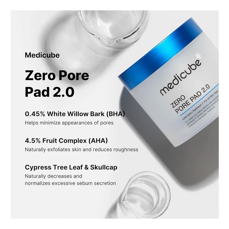medicube Zero Pore Pads 2.0, Dual-Textured Facial Toner Pads for Exfoliation and Pore Care with 4.5% AHA Lactic Acid & 0.45% BHA Salicylic Acid, Ideal for All Skin Types, Korean Skin Care